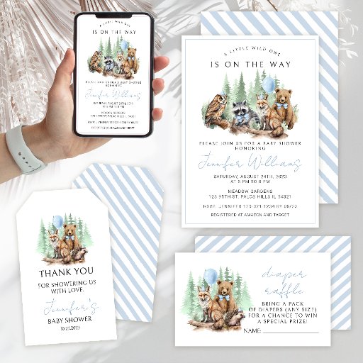 Animais da floresta em aquarela chá bebê menino obrigado cartas.