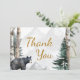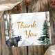 Envie uma nota de gratidão com este cartões de agradecimentos rústico de matas, com pássaros aquosos, pinheiros verdes e um pano de fundo da montanha com um encantador urso negro. Projetado para coordenar com o Oh Boy! Deixe a coleção Adventure Begin chá de fraldas, esta placa dobrada oferece um dentro vazio para mensagens pessoais. Perfeito para chás de fraldas, comemorações ao ar livre ou pais apaixonados por aventura.