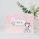 Obrigado seu convidado com esta adorável menina elefante vestindo rosas florais cor-de-rosa com "Obrigado" em uma nuvem e um elefante fofo em um balão de ar quente rosa com pano de fundo de confetti rosa. Nas costas, um elefante fofo num balão de ar quente cor-de-rosa com um fundo de gradiente rosa e branco.