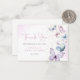 Uma borboleta está a caminho! Este cartões de agradecimentos mágico de chá de fraldas de borboletas apresenta lindas borboletas roxas e rosa com uma borboleta dourada. É perfeito para um chá de fraldas feminino. Use os campos modelo para adicionar suas informações e personalizar este item. Entre em contato com o designer se precisar de assistência para adicionar suas informações.