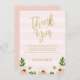 Esta aquarela floral e o cartões de agradecimentos de chá de fraldas da menina da caligrafia em ouro é simples, mas elegante. Ele apresenta uma borda floral na base do design e uma letra de caligrafia que se desenha em ouro falso. O plano de fundo é um padrão rosado fraco. Se você quiser uma cor diferente para o verso do convite, você pode alterá-lo. Os rosas florais de aquarelas desta menina e o cartões de agradecimentos de chá de fraldas de caligrafia dourada estão prontos para serem personalizados. O mesmo convite para chá de fraldas de design está disponível na loja.