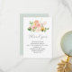 cartões de agradecimentos chá de fraldas com guião e flores cor-de-rosa, laranjas cítricas. O texto e as cores podem ser personalizados.
