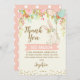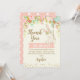 Um Cartões de agradecimentos de coelhinho doce, Chá de fraldas coelhinho, com um cartões de agradecimentos de chá de fraldas, com um belo coelhinho com um arranjo floral, balão e faixa cor-de-rosa. O mesmo convite para chás de fraldas de design também está disponível.