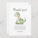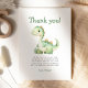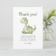 Este cartões de agradecimentos bonito apresenta um dinossauro verde a aquarela abaixo das palavras "Obrigado" em impressão verde. Personalize o texto com sua mensagem em cinzas de carvão sans serif e linha de assinatura impressa à mão verde.