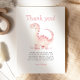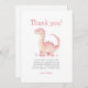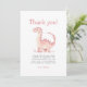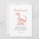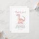 Este cartões de agradecimentos bonito apresenta um dinossauro cor-de-água rosa abaixo das palavras "Obrigado" em impressão mão rosa. Personalize o texto com sua mensagem em cinzas de carvão sans serif e linha de assinatura impressa manualmente rosa.
