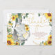 Obrigado seu convidado com este lindo cartões de agradecimentos com ilustração de um adorável elefante bebê cercado de lindíssimos girassóis e verde-água.