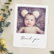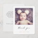 Este modelo de cartões de agradecimentos de fotografia, simplesmente encantador, apresenta um design simples com um sabor quente e feito à mão que nos lembra uma foto instantânea vintage. Escolhemos os cantos arredondados como a forma padrão da placa, mas os cantos nítidos padrão também são uma escolha de excelente, então tente ambos os modos de edição e veja o que atinge seu rico! A frente apresenta o nome do seu bebê sob sua foto favorita e uma mensagem de 'obrigado você' em um roteiro casual moderno de escrita manual em preto. Não é possível alterar a cor deste elemento de script de escrita manual. O texto do nome abaixo é um tom de ouro elegante chamado California Dourado, que você pode escolher mudar para outra cor ou fonte. Na parte de trás, escolhemos uma cor de fundo chamada Fumaça Branca, é uma cinza muito clara que é principalmente branca. Você pode mudar isso facilmente selecionando uma das cores básicas nas ferramentas de edição, inserindo outro número de cor no lugar da nossa, se você tiver uma matiz específica em sua pesquisa, ou olhando para a ferramenta do espectro de cores e escolhendo algo à vista. Ou você pode decidir tornar a base transparente, deixar a cor do papel simplesmente servir como tom de fundo, como fizemos na frente do cartão. Escolhemos tons de cinza como as cores padrão para o texto no verso. Colocamos algum texto marcador de posição no verso para que você substitua por sua própria mensagem enquanto vê ajustado, mas por favor não se sinta restrito por isso. Se você preferir excluir o texto do marcador de posição completamente e manter o vazio de trás totalmente para que você possa escrever uma nota manuscrita em cada cartão, você pode fazer isso. Ou talvez você queira substituir nosso texto por sua própria mensagem de gratidão e seu próprio fechamento e então assinar seus nomes quando você receber os cartões. Você também pode mudar a fonte e pode mudar o caso da aparência de todas as maiúsculas que adicionamos. Caso você queira fazer seus nomes parte do design do cartão em vez de assinar manualmente, escolhemos uma fonte de script de escrita manual relaxada mas legal para nossos nomes de exemplo que você pode editar ou excluir sem substituir de acordo com sua preferência. Em qualquer caso, não se esqueça de excluir nosso texto de amostra/espaço reservado em ambos os lados da placa e lembre-se de substituir a foto do espaço reservado na frente por sua. O tipo de papel padrão, matte, tem um calor suave e resiste a manobras, então é uma escolha excelente para escrevendo sua própria mensagem, se você optar por fazer isso. Você pode mudar isso para semirbrilho com um nó para um visual instantâneo do tipo de foto, ou um dos papéis Premium ou Signature do zazzle para se adequar ao seu estilo. Use as ferramentas intuitivas de design, sua foto favorita e sua inspiração e faça com que esse cartões de agradecimentos de chá de fraldas de fotos, elegantemente simples, seja exclusivamente seu!