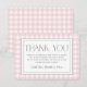 Procurando a maneira perfeita de expressar sua gratidão? Celebre a alegria ocasião de um chá de fraldas com esse cartões de agradecimentos elegante e charmoso. Apresentando um encantador padrão de gingham cor-de-rosa com uma bela caligrafia, é a escolha ideal para um chá de fraldas elegante. Adote o estilo do eterno e o sentimento de vintage para um toque memorável!