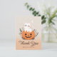Expresse a sua gratidão com este cartões de agradecimentos de Halloween, com uma ilustração encantadora de um gato sentado numa abóbora, cercado por folhagem. O fundo apresenta tons laranja leves e beges, criando um aspecto quente e festivo perfeito para um chá de fraldas com tema de queda. Todo o texto é totalmente personalizável, permitindo que você personalize sua mensagem para seus convidados. Este cartões de agradecimentos temático do Dia das Bruxas é uma maneira deliciosa de compartilhar apreciação com um toque lúdico e sazonal.
