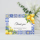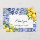 Traga um pouco de charme mediterrânico para o seu chá de fraldas com este Cartões de agradecimentos italiano de limão Azulejo azul. Com limões vibrantes inspirados na costa Amalfi e padrões azuis clássicos de azulejo, esta elegante é perfeita para uma celebração neutra em termos de gênero. Quer você esteja agradecendo aos convidados pela sua presença, amor, ou presentes pensativos, esta carta adiciona um toque na moda e sincero. Ideal para chás de fraldas com tema italiano, cítrico ou costeiro.