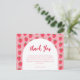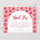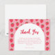 O Cartões de agradecimentos de morango é um design com um lindo padrão de morango rosa e vermelho e um arco branco cercando a mensagem de apreciação do Chá de fraldas de sua garota. Use o botão azul "Personalizar" para adicionar sua mensagem. Arte original do Ana Garza/Kardz Studio. Se tiver alguma pergunta, entre em contato comigo através do bate-papo Zazzle.