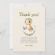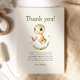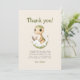 Este cartões de agradecimentos bonito apresenta um dinossauro beige e verde cor d'água, eclodido a partir do seu ovo, abaixo das palavras "Obrigado" em impressão verde. Personalize o texto com sua mensagem em cinzas de carvão sans serif e linha de assinatura impressa à mão verde.