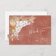 Este cartões de agradecimentos chá de fraldas é exótico, elegante e chique. Esta bela coleção é cheio de vida, quente de uma praia ensolarada em um lugar distante. Folhas de palma quítica de Boho e flores brancas contrastam lindamente com o fundo de terracota no verso adicionando um toque elegante a essa coleção.