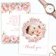 Cartões de agradecimentos de chá floral de menina de cor d'água, rosa e giro.