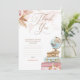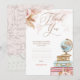 Cartões de agradecimentos de Chá de panela Boho Floral Viajante Sweet e floral boho moderno viajando de Miss para a Sra. chá de panela com dois arranjos florais cor-de-rosa, um título de caligrafia decorativa, três malas e um globo mundial.