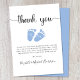Cartões de agradecimentos bonito para o chá do seu bebê com "obrigado você!" num roteiro na moda com pestanas e uma aquarela azul de pés de bebês. Por baixo, você pode personalizar facilmente seu obrigado, enviar uma mensagem ou deixar o vazio para uma nota manuscrita.