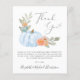 Um cartões de agradecimentos favorável ao orçamento para a festa do chá do seu bebê, com "Obrigado" em um roteiro de cinza com um inchaço cardíaco, e um buquê de aquarela de uma abóbora azul pastel, florais laranja e verde. Personalize o seu obrigado, transmita uma mensagem em uma simples tipografia moderna de cinzas leves e adicione seus nomes em um roteiro de cinza semelhante a assinatura.