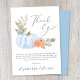 Um doce cartões de agradecimentos para a festa do chá do seu bebê com "Obrigado" num roteiro de cinza com um inchaço cardíaco, e um buquê de aquarela de uma abóbora azul pastel, florais laranja e verde. Personalize o seu obrigado, transmita uma mensagem em uma simples tipografia moderna de cinzas leves e adicione seus nomes em um roteiro de cinza semelhante a assinatura.