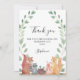 Obrigado a sua família e amigos com este cartões de agradecimentos de aquarela giro e caprichoso. Esses amigos da floresta, raposa, guaxinim, ouriço, coelho e esquilo são cercados por verde-rústico com cor d'água. Personalize este cartão com seu nome e mensagem. Porque nós criamos nosso próprio trabalho de arte você não encontrará essa imagem exata de outros designers. Original Watercolor © Michele Davies.