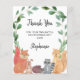 Obrigado a sua família e amigos com este Cartões de agradecimentos de Chá de fraldas de de Orla Água giro e caprichoso. Esses amigos da floresta, raposa, guaxinim, ouriço, coelho e esquilo são cercados por verde-rústico com cor d'água. Personalize este cartão com seu nome e mensagem. Para editar ainda mais, use a Ferramenta Design para alterar a fonte, o tamanho da fonte ou a cor. Porque nós criamos nosso próprio trabalho de arte você não encontrará essa imagem exata de outros designers. Original Watercolor © Michele Davies.
