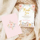 Este cartões de agradecimentos adorável apresenta animais cártaros bonitinhos vestindo coroas de flores cinzentas em suas cabeças, ao lado de uma bonito torre rosa adornada com rosas embebidas em aquarela e verde macio. Se desejar alterar as fontes, as cores da fonte ou reorganizar o posicionamento do texto, basta clicar no botão "Personalizar mais".