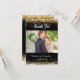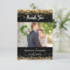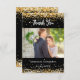 Um casamento moderno Obrigado, cartão com fotos. Um fundo preto decorado com confete de ouro falso. Personalize e adicione sua foto e obrigado nota. Voltar: adicione seu link/url de casamento ao seu site de casamento.