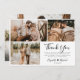 Elegante, Mínimo, Cartões de agradecimentos De Foto De Casamento De Script. modelo de cartão de casamento na moda com três (3) fotos na frente e uma foto de cheio no verso. Com o texto "Obrigado" em uma letra escrita tipografia escrita escrita, escrita à mão, em preto sobre fundo branco. Personalize com seu nome e obrigado sua mensagem. Um pouco de coração entre os nomes. Se preferir escrever manualmente a sua nota, basta eliminar o texto de amostra para obter mais espaço. Se você precisar de ajuda ou item correspondente, entre em contato comigo!