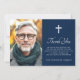 O cartões de agradecimentos de simpatia de envenenamento elegante com o modelo de foto e o seu obrigado personalizado. Cruz branca e elegante sobre fundo azul escuro ou cor personalizada. Você pode mudar todas as cores na ferramenta design.