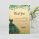 Um cartões de agradecimentos de aniversário feminino e elegante. Um fundo com aparência falsa de ouro, com brilho verde, faíscas e um vestido verde. À frente, um grande texto escrito à mão e o texto: Obrigado.