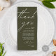 Compartilhe o amor e mostre seu apreço aos seus convidados, quando eles sentarem em seu assento e lerem esse obrigado encantador personalizado que você coloca no tema verde-oliva. É uma maneira maravilhosa de acabar com a sua celebração especial de dia! Este cartão define o tom de um evento inesquecível. O cartões de agradecimentos apresenta o tema moderno da design, acrescentando um toque de elegância do eterno à sua celebração. Projetado por TeeshaDerrick