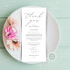 O Cartões de agradecimentos do lugar jante de casamento, em um guião moderno minimalista, em cinzas escuras. Compartilhe o amor e mostre seu apreço aos seus convidados, quando eles sentarem em seu assento e lerem esse obrigado encantador personalizado que você coloca com o cartão de ajuste. É uma maneira maravilhosa de acabar com a sua celebração especial de dia!