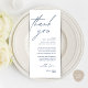 Compartilhe o amor e mostre seu apreço aos seus convidados, quando eles sentarem em seu assento e lerem esse obrigado marinho azul personalizado que você coloca no cartão. É uma maneira maravilhosa de acabar com a sua celebração especial de dia! Este cartão define o tom de um evento inesquecível. O cartões de agradecimentos apresenta o tema moderno da design, acrescentando um toque de elegância do eterno à sua celebração. Projetado por TeeshaDerrick
