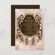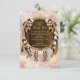 Um design de caçador de sonhos com guarnições douradas e marrons que inclui uma teia redonda de vida em círculo de bambu com penas castanhas e miçangas vermelhas em um fundo de pena macia para um casamento.