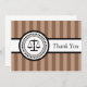 Stripes, Escalas Legais do Cartões de agradecimentos de Justiça (Brown)... Este cartões de agradecimentos legal chic é a maneira perfeita de dizer que o obrigado a todos os seus amigos e familiares pelo seu amor e apoio no momento da sua formatura na Faculdade de Direito. Também excelente obrigado cartões para que firmas de advocacia usem. Consulte WindyCityStationery.com para obter nossa linha completa de "Stripes Legal Scales Of Justice", obrigado a cartões em uma ampla variedade de cores, assim como convites de correspondência, selos postais e muito mais.