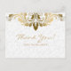 Rolha floral de ouro elegante em damascos brancos, cartões de agradecimentos personalizável.