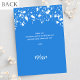 Um cartões de agradecimentos para um Chá de fraldas. Uma cor azul brilhante de fundo. Decorado com estrelas brancas. Voltar: Personalize e adicione seu nome e nota de agradecimento.