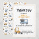 Veículos de construção em forma de corte cobrir este cartões de agradecimentos de festa de aniversário. Estas pequenas ilustrações de construção de aquarelas são tão charmosas! Obrigado divertido que você escreve junto com o nome e o obrigado do seu filho que a mensagem adiciona à diversão. Veja a coordenação de itens no nosso compro, Encantado Finch.