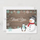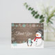 Cartões de agradecimentos de floco de neve de Natal de inverno. Snowman e Pinguim. Fundo Da Madeira Rústica. Campo de Vintage Retro Barn. Aqua Snowflake. Amor e Obrigados, bela fonte de roteiro. Adicione sua mensagem de volta ou deixe vazio e escreva à mão. Para mais personalização, clique no botão "Personalizar" e use a ferramenta design para modificar este modelo.