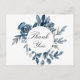 Obrigado postal com flores azuis de indigo aquoso. Adequado para casamentos, aniversários ou chás de fraldas. Projetado para corresponder à coleção de indigo azul.