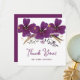 Um belo cartões de agradecimentos com flores de aquarela roxas bonito acentuado por pequenos pontos de ouro cheios de um efeito de brilho digital. A parte traseira contém um espaço reservado para sua foto e mensagem especial.