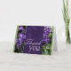 Flores púrpuras suaves com sotaques verdes claros e obrigado-o na frente. Personalize qualquer maneira que você gosta de dentro.