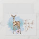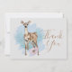Que cartões de agradecimentos bonito e fofo! Design apresenta veado aquoso com folhas e flores de pinheiro. Fundo de aquarela azul do pincel. Obrigado, linda fonte de script. Você pode personalizar o design alterando a cor do plano de fundo, o tamanho e a cor da fonte e fazer a imagem pequena ou grande, organizar os elementos como quiser.