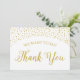 Cartões de agradecimentos de vendedor casado em confete de ouro e texto de caligrafia. Para um olhar coeso, visite minha loja para ver as coleções dos nossos sinais de casamento confetti.