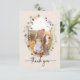 Este na moda e elegante cartões de agradecimentos de casamento apresenta lindas flores de aquarela pintadas manualmente organizadas como uma coroa encantadora com uma fotografia de noivado para personalização. O verso inclui um belo buquê de coordenação com texto para personalização. Encontre itens correspondentes na Coleção de Casamentos de Tan Boho Wildflower.