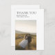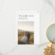 Cartões de agradecimentos simples e clássico com foto de casamento. Apresentando uma fonte moderna, incluindo nomes e data em fundo branco. Uma mensagem sincera centra-se no lado oposto. A cor do texto e do plano de fundo é totalmente alterável.