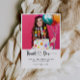 Celebre a sincera gratidão com este maravilhoso aniversário Obrigado Cartão com fotos — a maneira perfeita de dizer obrigado após uma celebração divertida! Com espaço para uma foto pessoal e uma mensagem personalizável, este cartões de agradecimentos combina calor e estilo, fazer sua nota de apreciação verdadeiramente memorável. Ideal para aniversários infantis, comemorações de marcos ou festas de adultos, esta modelo é totalmente editável no Zazzle. Personalize facilmente o texto, as fontes e as cores para corresponder ao tema do seu partido. Uma encantadora guardiã que seus hóspedes apreciarão, esta carta é um toque atencioso para completar sua celebração.