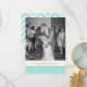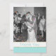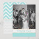 Cartões de agradecimentos de fotos de casamento temporário feito com sua foto personalizada na frente e na área de texto, no verso para sua mensagem personalizada. Feito em bonito azul aqua e branco com sotaques dourados, na frente e em um padrão zigzag górtero, na parte traseira da placa. Personalize o texto para uma maneira adorável de enviar sua gratidão aos seus convidados de casamento.