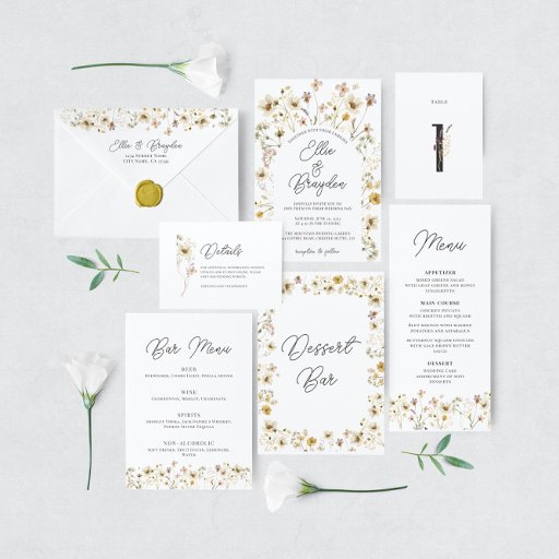 Este cartões de agradecimentos romântico de casamento plano apresenta um arco moderno, letra de script e flores selvagens delicadas. Substitua a foto na frente por uma do seu casamento. Adicione sua própria mensagem ou exclua o texto para que você possa escrever sua mensagem manualmente no verso. Veja outros itens na coleção "Watercolor Wildflower".