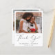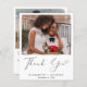 Cartões de agradecimentos de casamento amigável com sua foto e "Obrigado" em um roteiro elegante e contemporâneo com uma batida cardíaca. Personalize com seus primeiros nomes e data de casamento em uma simples tipografia moderna. No verso, adicione uma foto adicional e a mensagem do seu obrigado personalizado.