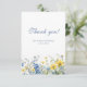 Sua escolha de foto do casal recém-casado com uma mensagem pessoal e assinaturas no sentido inverso. Os florais azuis e amarelos deliciosos são apresentados na frente com um espaço azul sólido e espaço para a mensagem no verso do cartão.